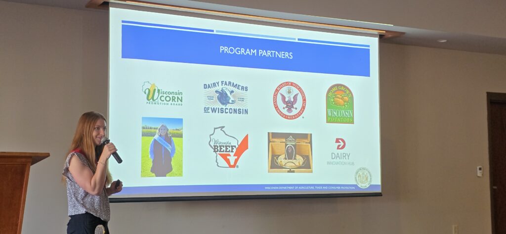 Ryan Lewis introduced the day’s speaker, Sarah Hagenow. As Wisconsin’s 78th agriculture ambassador, Sarah Hagenow’s goal is to educate audiences about the importance of Wisconsin’s diverse agriculture industry, how it impacts our daily lives, and the $116.3 billion economic impact it has on the state’s economy.