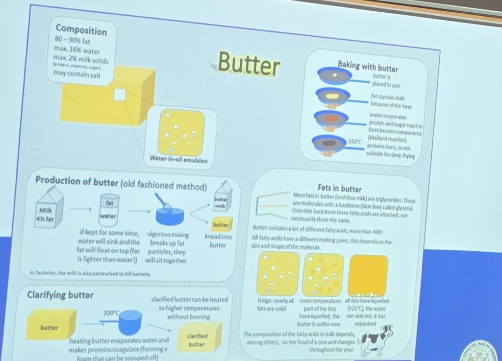 During the presentation, Alice passed out cups of whipping cream to the entire room. She explained the lids of the cups were lined with buttermilk. The combination of the top ingredients, and a lid check, several minutes of shaking, produced butter, which everyone took with them.