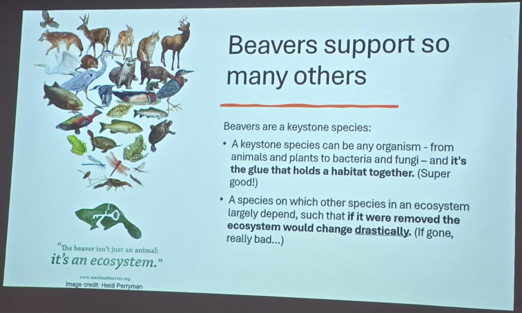 In the 1950s, the government already understood the restorative powers beavers have. Amy had a short video with beaver airdrops, whereupon beaves were loaded into specialized containers and dropped into new environments to improve them.
