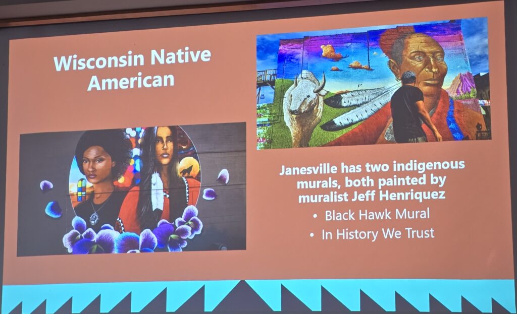 Kiwanis member Jim Farrell asked, “Which tribe is in the Kenosha area?” Kim responded, “Potowanami.”