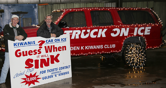 Overview: A truck is placed on ice on the pond at Traxler Park. The truck has a clock installed which will stop when the truck sinks. Purchased tickets provide chances to guess the date and time the truck sinks, and the best guesses win cash prizes.